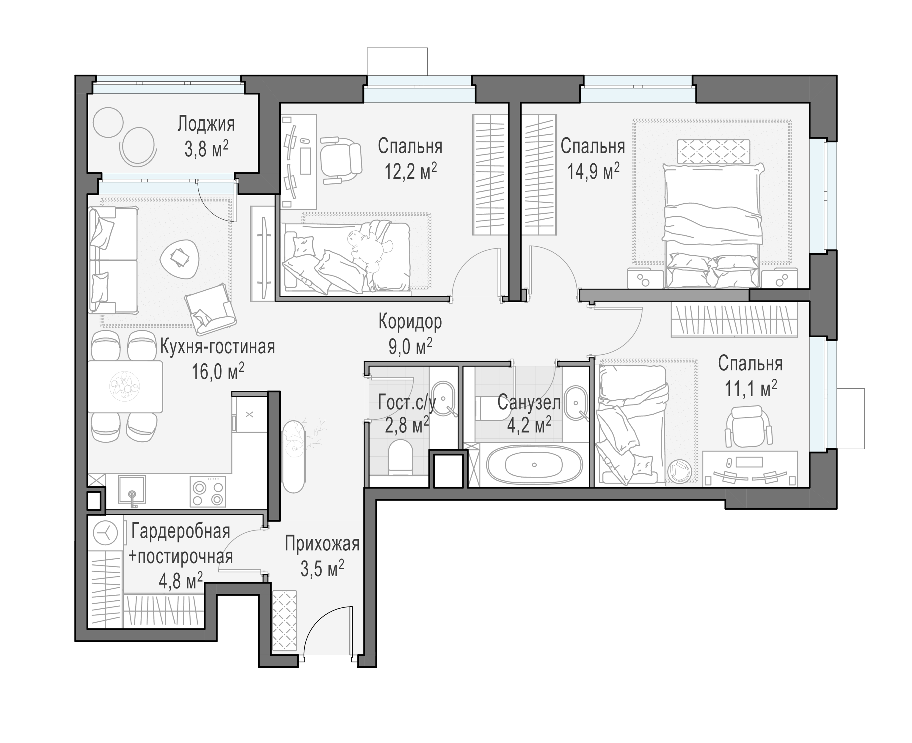 В квартале комфортные дома со светлыми и просторными подъездами, где созданы колясочные и келлеры. Доступен большой выбор планировочных решений, в том числе готовых квартир. Квартиры предлагаются как с отделкой, так и без неё.